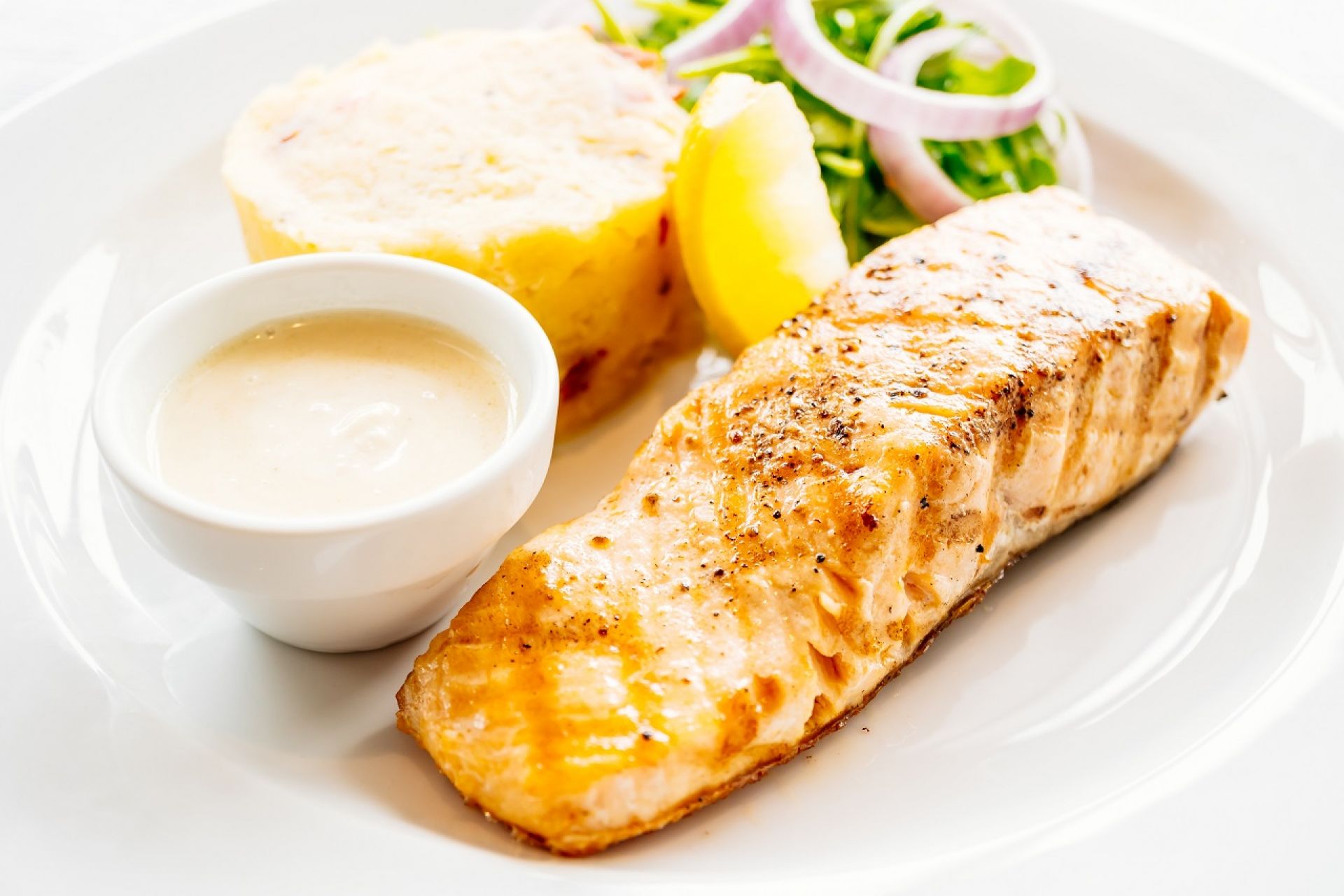 Losos iz pećnice s kremastim zelenim pireom